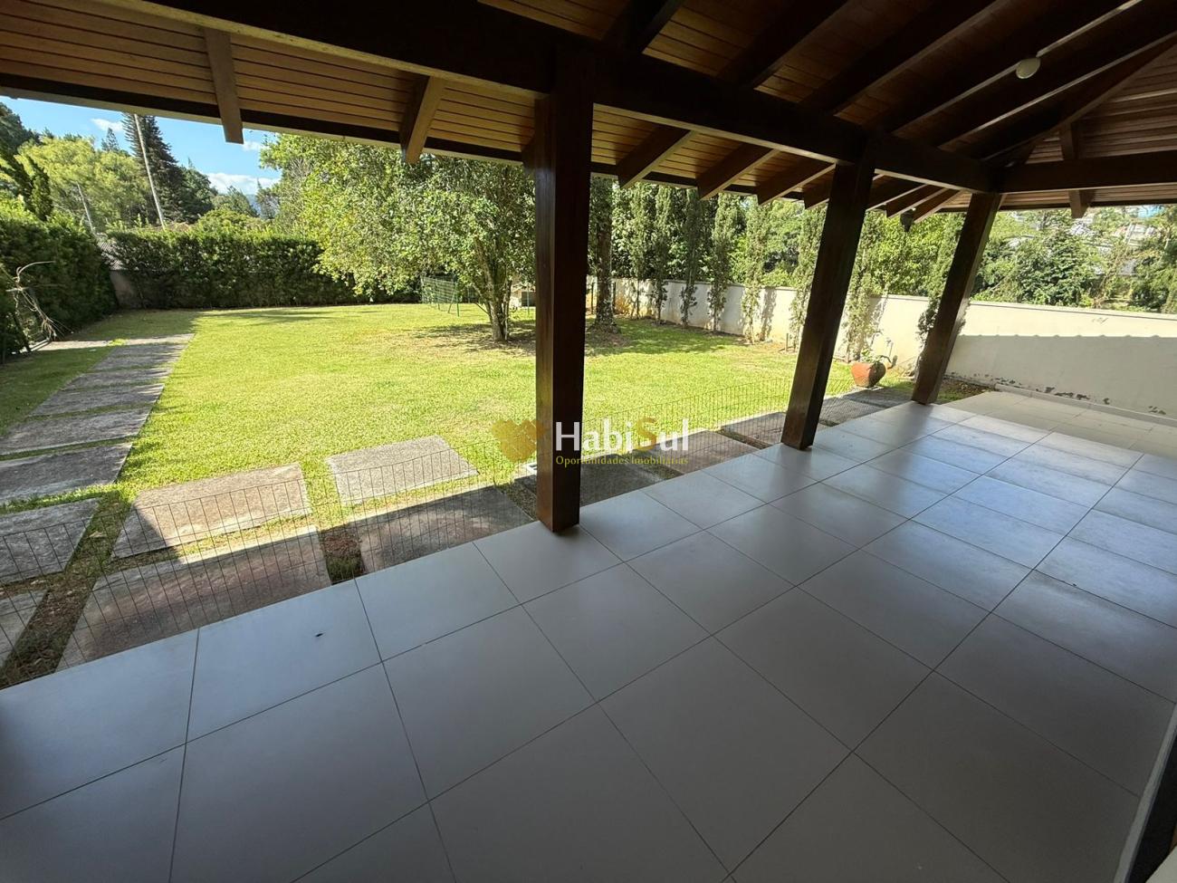 Amplo jardim, com belo paisagismo